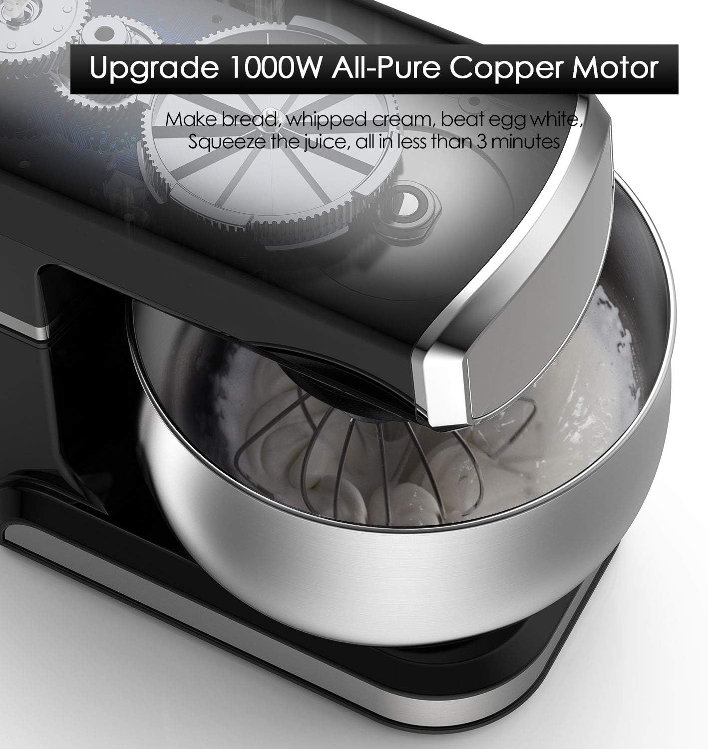 Stand Mixer | 1000W Kitchen Mixer Electric Food Mixer | 6 Speeds with 304 Stainless Steel Bowl Tilt-Head Dough Mixer, Dough Hook, Whisk, Beater, Splash Guard & Scraper
