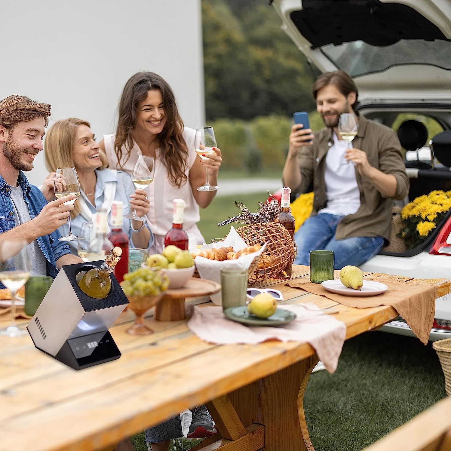 Wine Cooler | Electric Wine Chiller for 750mL | Wine and Some Champagne Bottles | Single Bottle Wine Cooler Keep Cold Up to 24 Hours| Portable Outdoor Iceless Chiller for Patio Poolside Picnic BBQ Party